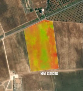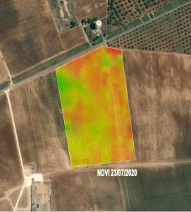 Di seguito si riportando le riprese satellitari (Sentinel 2) con elaborazione indice di vigoria NDVI e di indice di clorofilla TCARI-OSAVI, nonché le riprese fotografiche effettuate per la valutazione dell’uniformità di distribuzione.