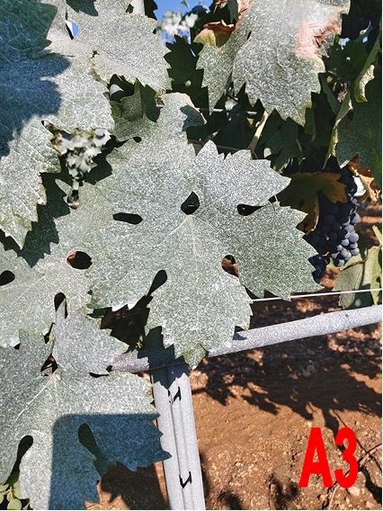 Non è stato possibile valutare le scottare in quanto nel corso della periodo di prova, non ci sono verificate situazioni con eccessi termici. Non è stato valutato la risposta allo stress idrico, in quanto il vigneto è stato gestito con opportuni interventi in grado di non far entrate la pianta in stato di stress e conseguentemente attivare le azioni di protezioni come la chiusura degli stomi che rendono i grappoli più suscettibili ai danni da scottature e da caldo. A tal riguardo si segnala però che la maggiore vigorie riscontrata potrebbe essere collegata ad un maggiore efficientamento, da parte della pianta trattata, della risorsa idrica.