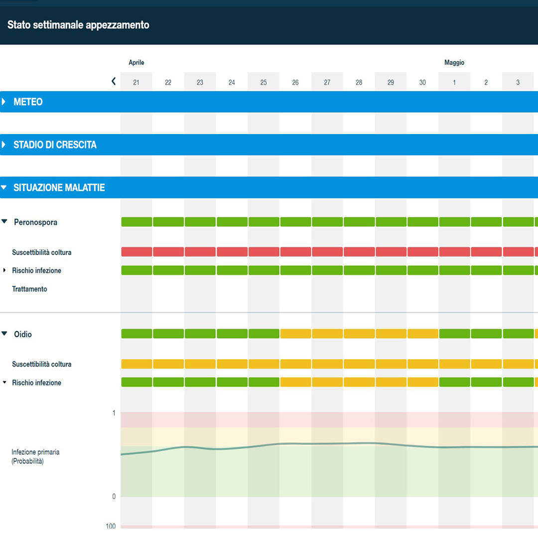Sono sistemi complessi in grado di elaborare una grande quantità di dati e restituire all’utente alcune indicazioni sul rischio epidemiologico delle principali avversità, peronospora e oidio in particolare.
